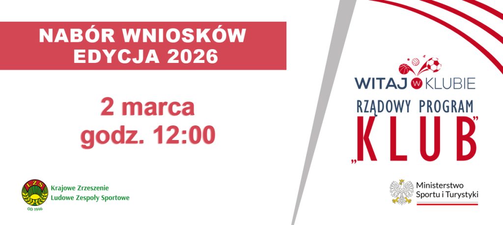 Informujemy, że na stronie internetowej KZ LZS www.lzs.pl został ogłoszony nabór wniosków na realizację projektu pn. „Organizator sportu w środowisku wiejskim” – edycja 2026 r.