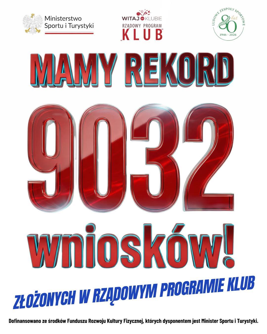 🚨📢 Koniec naboru do Rządowego Programu KLUB! 📢🚨 📊 9032 wnioski 🔥 To rekordowa liczba wniosków! – tyle wpłynęło w tegorocznym naborze. Ogromne zainteresowanie pokazuje,